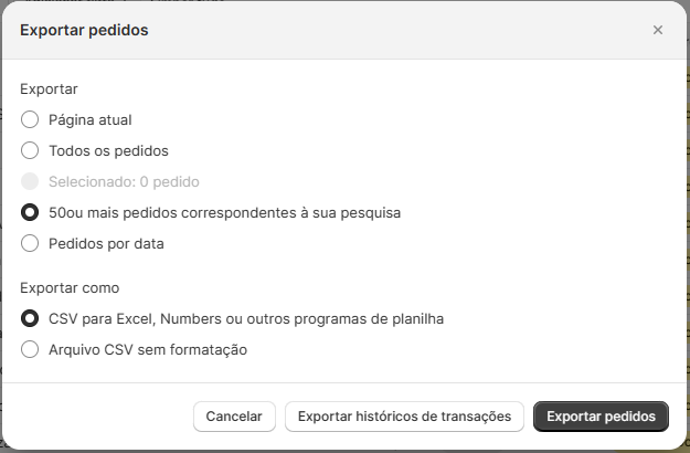 7. Será aberto uma caixa de diálogo "Exportar pedidos";